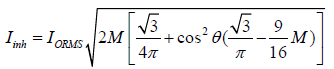 IGBT等開(kāi)關(guān)器件的快速開(kāi)通和關(guān)斷,在變流器直流側(cè)電流中所引起的開(kāi)關(guān)頻率及其偶數(shù)次的高頻分量,這部分紋波電流都需要流過(guò)中間直流濾波電容。采用SVPWM工作的變流器,紋波電流有效值與交流輸出相電流的關(guān)系如下: