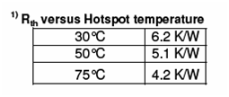 風(fēng)電變流器要求工作環(huán)境溫度為45℃,如要求電容內(nèi)部熱點(diǎn)溫度小于75℃,則電容溫升應(yīng)小于30K。由電容廠家提供的電容內(nèi)部熱點(diǎn)到環(huán)境的熱阻如下表所示,如果熱點(diǎn)溫度為75℃以下時(shí)電容的發(fā)熱功率應(yīng)該小于7.14W。