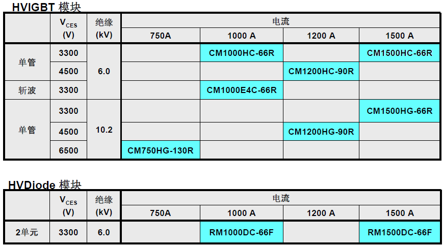 三菱電機(jī)的R系列HVIGBT,包括3300V、4500V和6500V三個(gè)電壓等級(jí),同時(shí)為滿足客戶對高壓二極管的需求,此次也推出了相應(yīng)的高壓二極管產(chǎn)品,其產(chǎn)品線布局如下:
